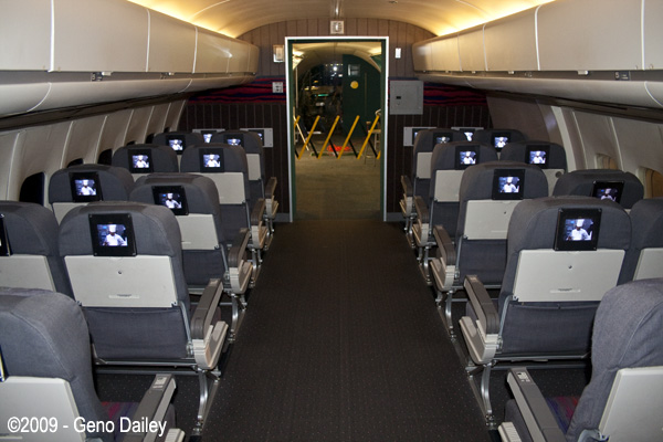 | The coach seating area of the plane complete with video monitors in the headrests!!! | ||