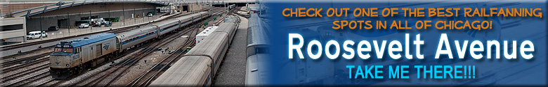 | I woke up around 7am and proceeded to write more of this travelogue. I would get the 9:20am Metra train back to Chicago so as to get in some railfanning at Roosevelt Avenue. I checked out of the hotel and dragged my 2 suitcases and camera bag down the platform to the Metra train #1262, the 9:20am train making all intermediate stops between Aurora and Chicago Union Station. I had a chat with another passenger who was riding also to Chicago, we mostly discussed sports. I then listened to my iPod the rest of the way. We arrived in Chicago at about 10:45am. I proceeded to get a picture of the train as I walked towards the station only to be told by someone from Metra that photography wasn't permitted in the station. After some research while putting this travelogue together, I come to find out that the station is owned by Amtrak and under Amtrak's photo policy, if you are a ticketed passenger (which I was at that point for Metra and later that day, Amtrak) you may briefly take a photo when boarding or alighting from your train. I took one picture (before I was told I supposedly couldn't) and proceeded inside to the Metropolitan Lounge. I dropped off my 2 bags at the lounge as I was now officially a sleeping car passenger on today's Texas Eagle which would leave at 1:45pm. After dropping off my luggage, I headed down to Roosevelt Avenue to go railfanning! In the below link, you'll see some photos I took during my railfanning outing there this year, check it out... | ||