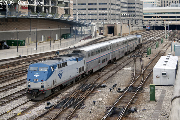 | A Michigan service train with P42 #75 on the lead. |