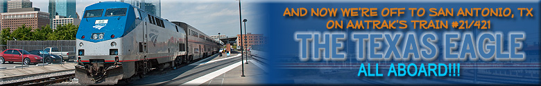 After spending about an hour at Roosevelt Ave, I walked back to Union Station. While on the way back, I stopped by a CVS/Pharmacy to pick up some "consumables" for the trip including the all important staples (Diet Pepsi, Chex Mix, Mixed Nuts and Tic Tacs). I had enough time for lunch so I picked up a copy of USA Today (if eating alone, I need something to read!) and went to some Chinese Restaurant inside the Union Station food court. I went back to the Metropolitan Lounge and picked up my luggage. The Texas Eagle was now boarding shortly after 1pm for sleeping car passengers. It's time to go to San Antonio, check out the link below! |