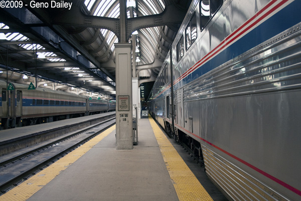 | The Texas Eagle at Union Station shortly before departure looking down the platform. |