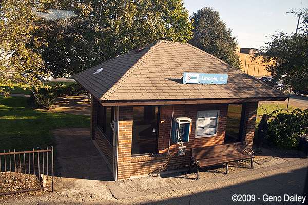 | The Amtrak Station in Lincoln, IL. There's something you don't see too many of anymore, a pay phone! |