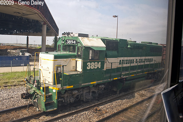 Arizona & California RR GP38AC #3894. We passed this unit just before arriving in Dallas.