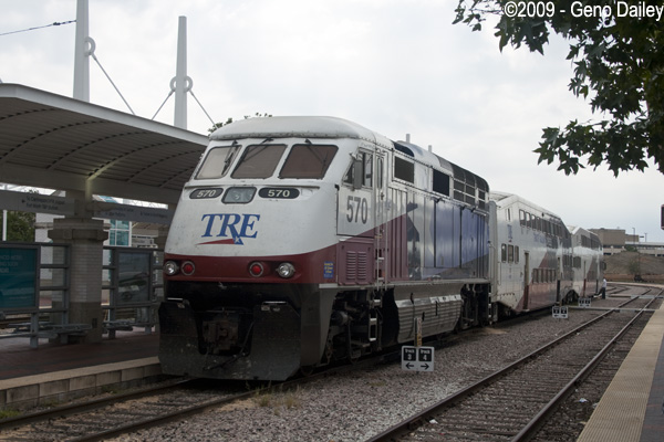 | Trinity Railway Express F59PHI #570 at Dallas Union Station. |