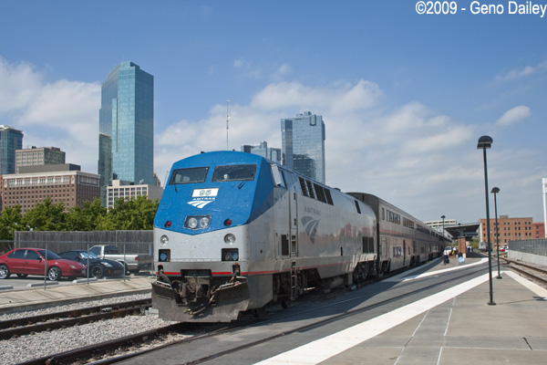 | The Northbound Texas Eagle after an engine swap, now with P42 #40 on the lead. |