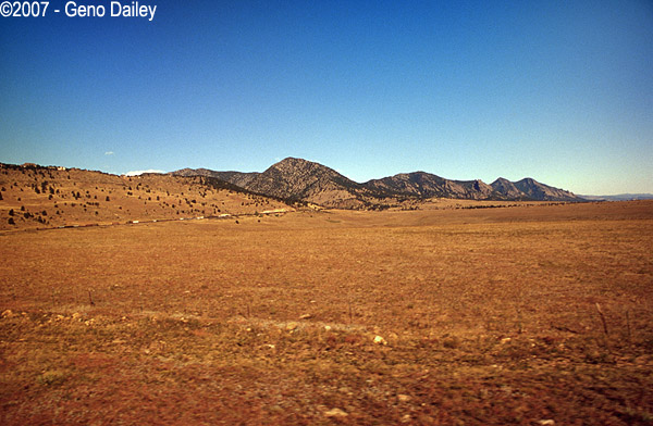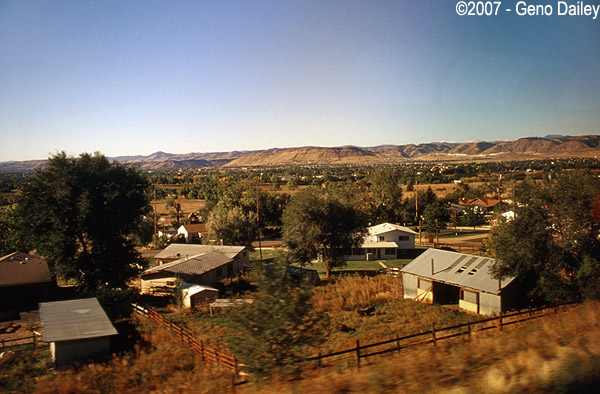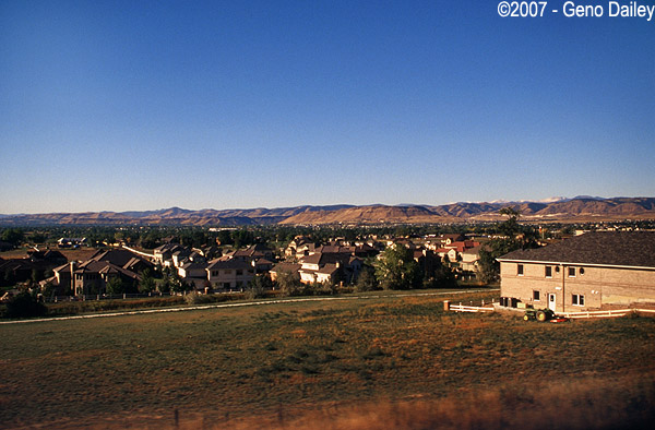 Shortly after leaving Denver, the hills can be seen in the distance. |