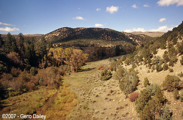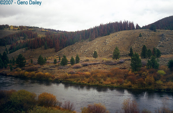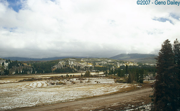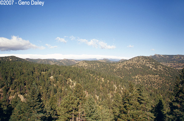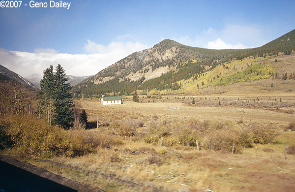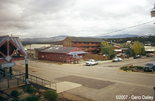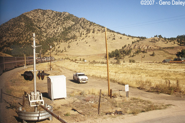 Rounding another bend, you can see the train in the left of the photo. This is coming into Fraser, CO. |