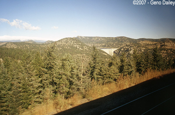 Though tough to see, from the left to center of the photo is our train making a sharp turn just before arriving in Denver. Shortly after this photo was taken, I removed the polarizer filter as it wasn't needed when shooting outside the coach windows as long as there was decent sunshine which thankfully, there was. |