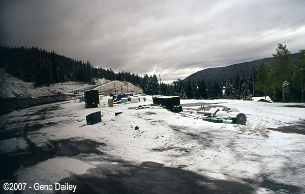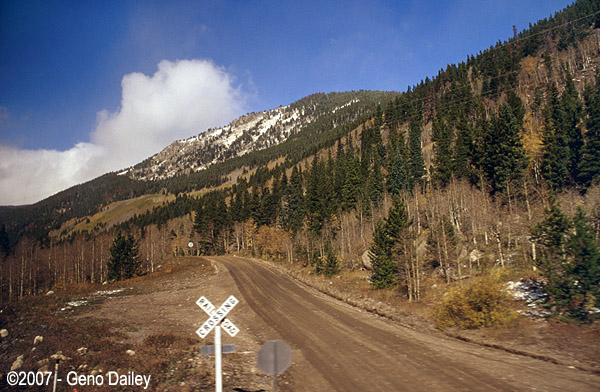 Another road crossing, this is near the Moffat Tunnel as evidenced by the higher elevation we were at and the snow on the ground because of it. |