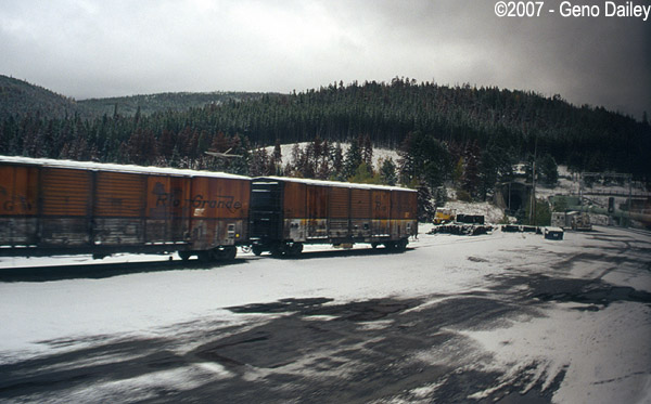 A couple Ex-Rio Grande boxcars near the west portal to Moffat Tunnel. |