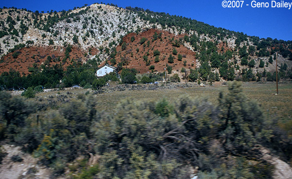 Starting to see some iron in those hills, hence the red-colored rocks. |