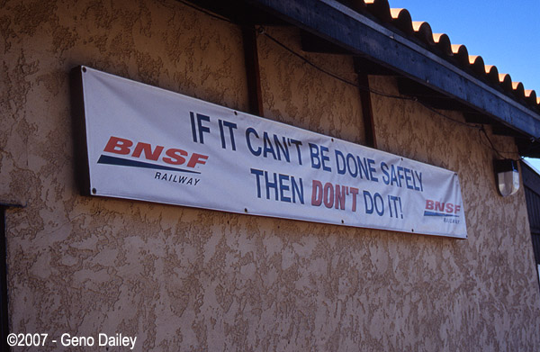 A BNSF Freight taking a break in Needles. The Needles Yard Office is on the same piece of property as the Amtrak Station here. |