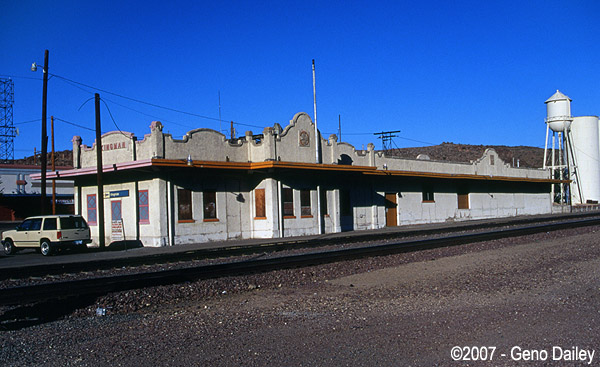 The Amtrak Station in Kingman, AZ. Located right on Historic Route 66, it's an original Santa Fe structure that at time of my visit was closed for renovations. Passengers boarding Amtrak's Southwest Chief use a non-descript storefront waiting room at a small plaza located near the station. |