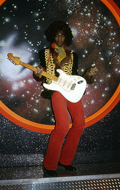 Left: Lenny Kravitz. Center: Mick Jagger. Right: Jimi Hendrix. |