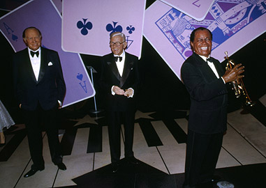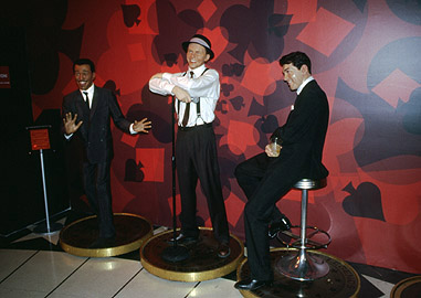 Left: Bob Hope, George Burns & Louie Armstrong. Right: The Rat Pack (Sammy Davis Jr., Frank Sinatra, & Dean Martin). |