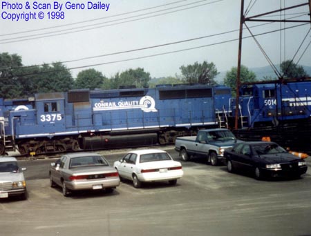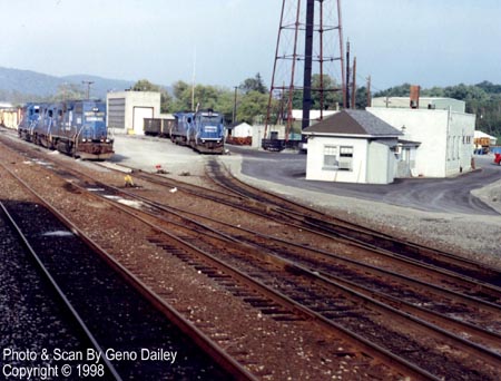 In Gang Mills, just west of Corning, is a small switching yard and engine service facility. For the railfan, this provided some great views of various pieces of Conrail power as well as some track maintenance equipment. |