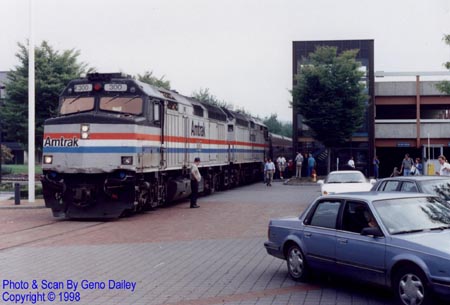 After leaving Gang Mills Yard, our train pulled on to the Y-Track that allowed us to back into Downtown Corning on the Corning Industrial Track (formerly the Corning Secondary). Our train parked right next to the Corning Glass World Headquarters, and stayed there for the duration of the stopover. It was a very different and unusual site for the citizens of Corning to see an Amtrak Train in their city, since Amtrak doesn’t run any regular service into Corning. While in Corning, there was a Jazz Festival, as well as many great little shops along Market Street, a free shuttle service was also provided for the passengers during the stopover. It was quite warm that day, with passengers seeking the Air-Conditioned comfort of being inside for the tour of the Corning Glass Works and the Rockwell Museum, both of which were free for passengers as part of the price of their train tickets. If your planning a day-long trip somewhere, Corning is a great place to go, if you want to visit the Glass Works, or just shop around on Market Street, it makes a great day-long getaway that I would recommend to anybody. Sometimes you may see some freight action on the Corning Industrial Track, which services the Corning Glass factory which was just behind where our train was parked. For some more great pictures in Corning, CLICK HERE... |
