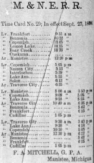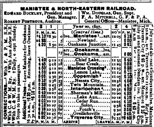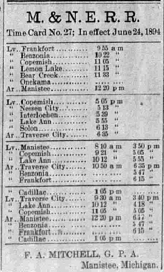 Manistee & North Eastern is making progress. A new time Table