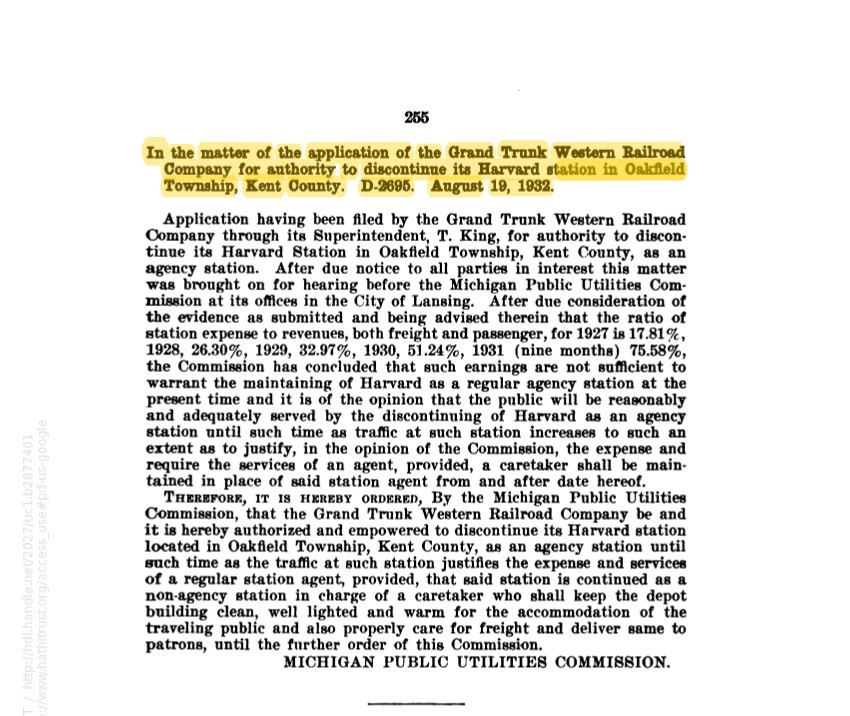 In 1916 a new depot was built at Perrinton to a new style. About this time a depot of this style was also built at Sheridan. The milk shed was built in 1892.
