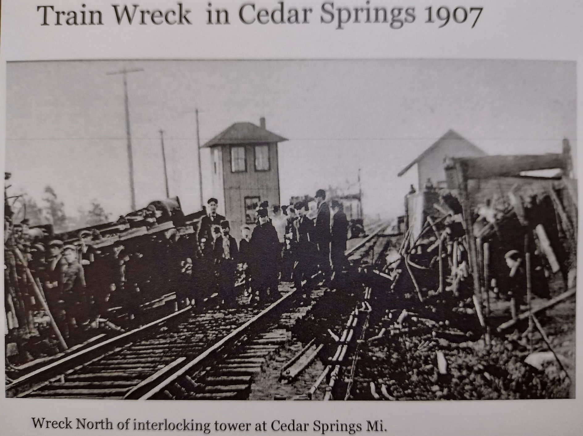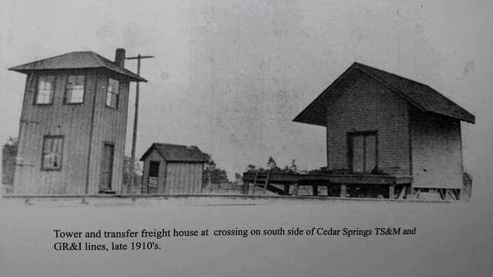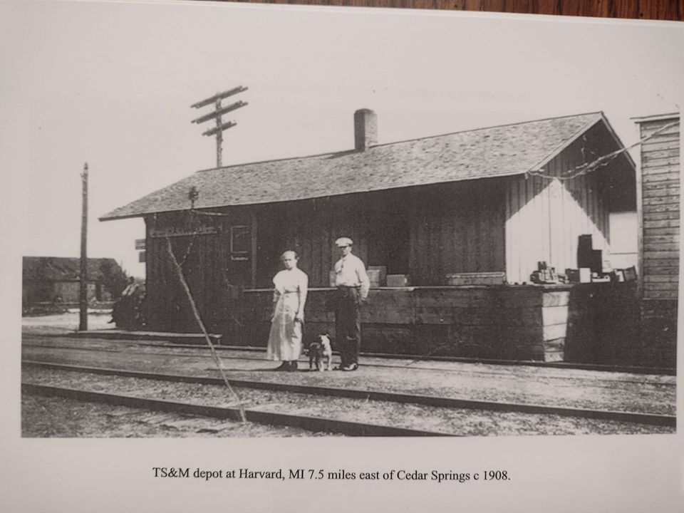 By Kaden Douma Picture of the TS&M depot at Slocum. There was a large sawmill and charcoal kilns at Slocum. IIRC The owner of the sawmill was not happy with the rates he was being charged by the TS&M, so he contracted with the GR&I to have a spur built north to Slocum. There was a large dam across Crockery Creek and mill pond at Slocum. My brother in law’s grandparents owned the property next to the trestle where the TS&M crossed Crockery Creek. The ruins of the charcoal kilns and Slocum’s Grove ROW were also on their property. The charcoal was shipped by rail to fire the blast furnaces of Spring Lake Iron Co in Fruitport. |