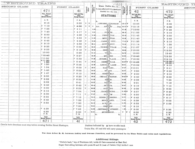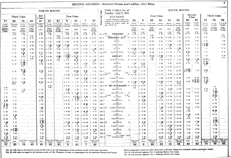 Ann Arbor Railroad Time Table below - show different train numbers for Grand Trunk trains.