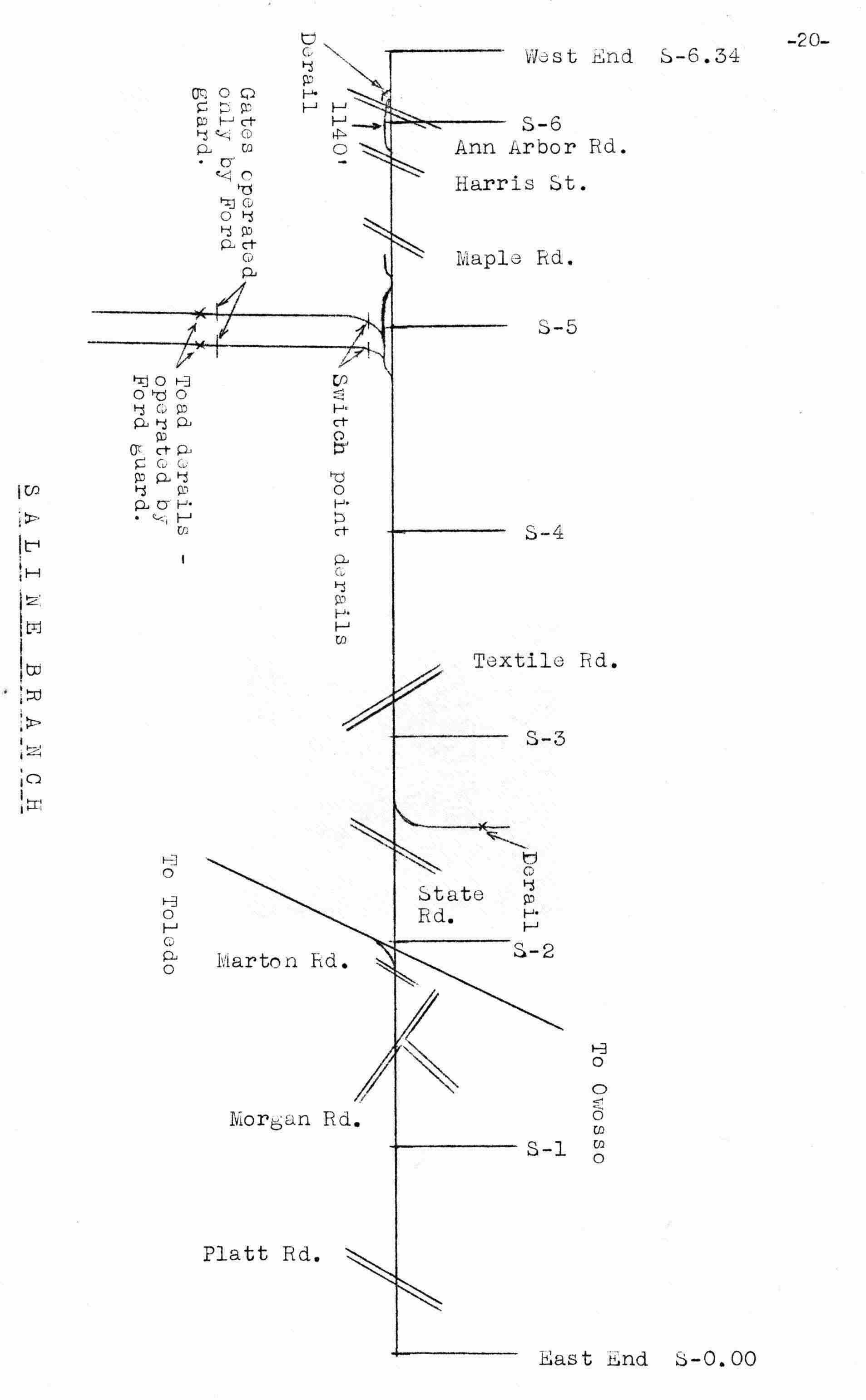 Maximum speed on Saline Branch between Marton Road MP S—1.80 and Ford Motor Co. switch MP S-4.83 is 15 MAH maximum speed on all other trackage on Saline Branch is 5 MAH.