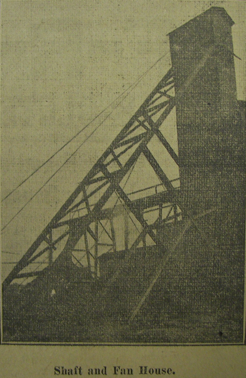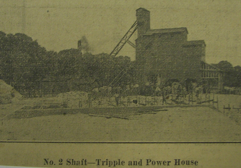 Foundation of powerhouse, coal mine shaft at bottom of picture. |