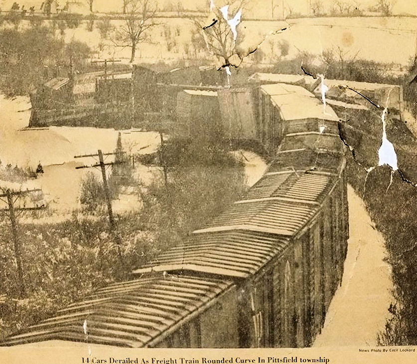 Fourteen cars and two locomotives of a 31-car Ann Arbor Railroad freight train were derailed on a stretch of track about a half-mile south of Michigan Avenue in Pittsfield townships early Sunday.