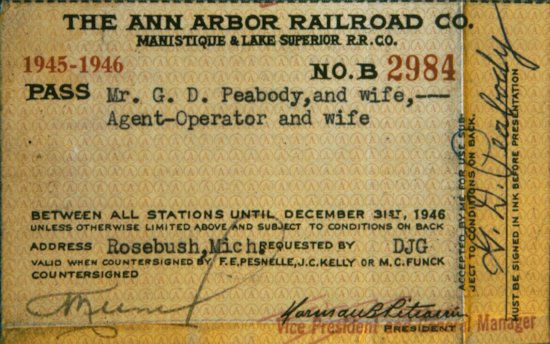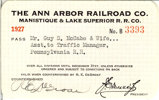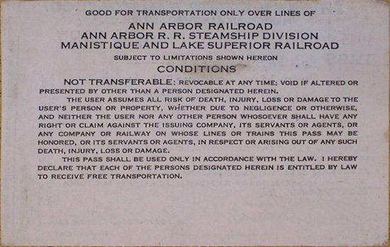 Ann Arbor Railroad and Manistique & Lake Superior Railroad Passes