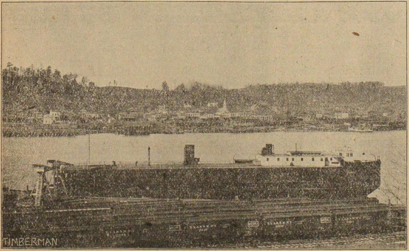 ferry entering harbor at Frankfort over ice