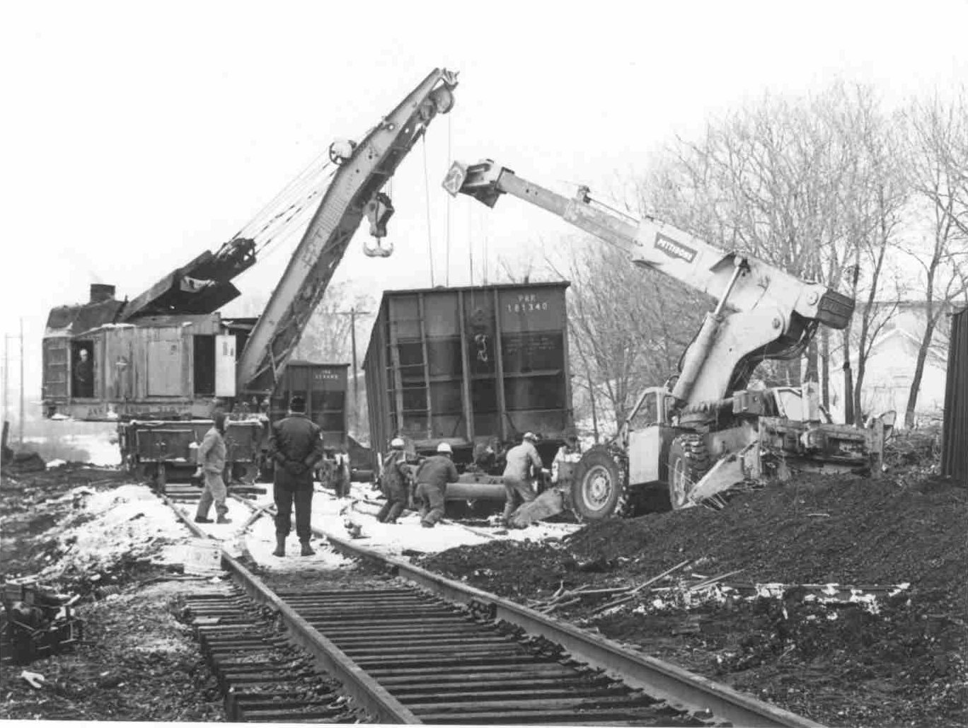 Working DOW coal train wreck at Whitmore Lake - Henry F. Burger photograph