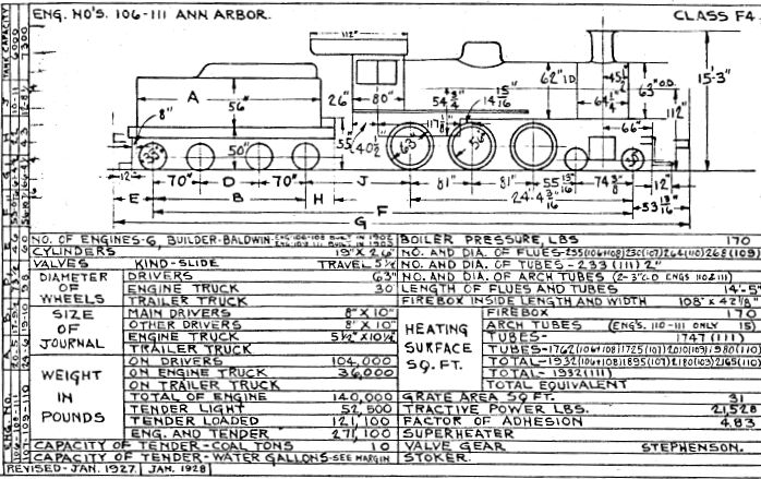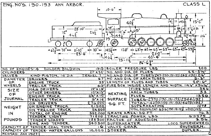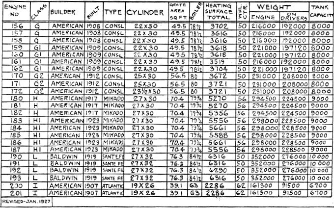 Steam Locomotive Outline Drawings and Data for 1928