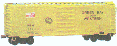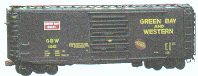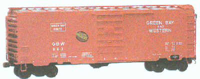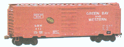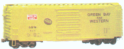 [No photo] GBW 500-519 / 50-foot P-S boxcars with 9-foot / P-S door. Built 1964. All dark green / 12-inch roadname and with "Packers" logos to right of the door. |
