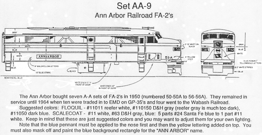 the Ann Arbor RR FA-2's. Yellow lettering and numbers and
