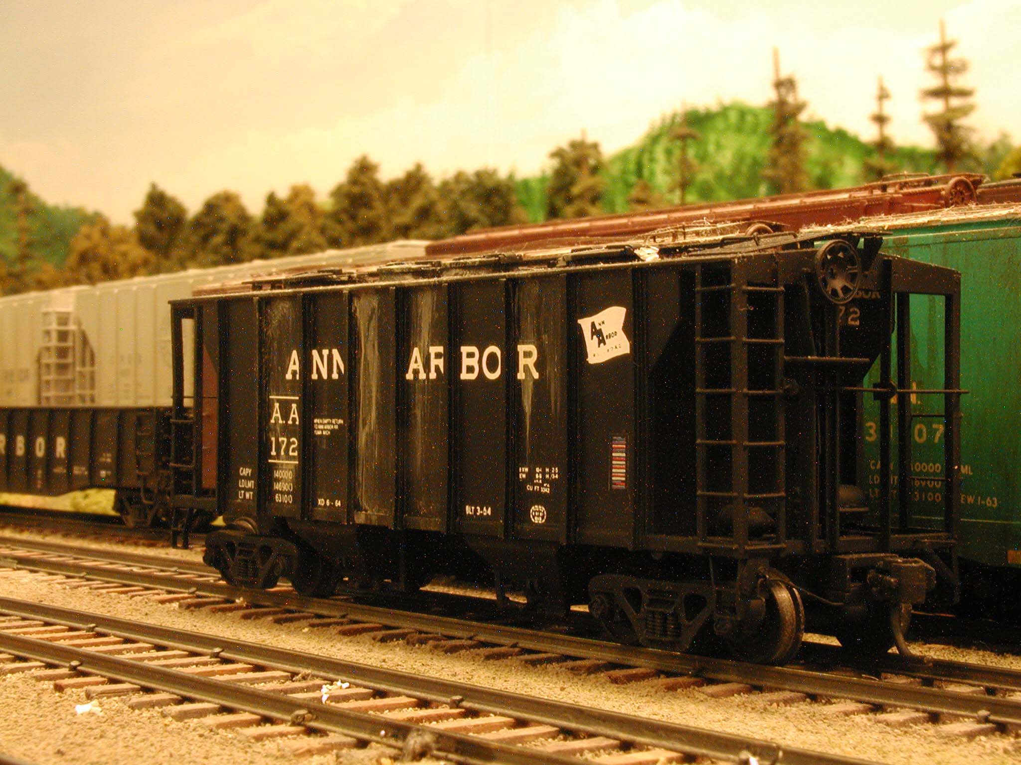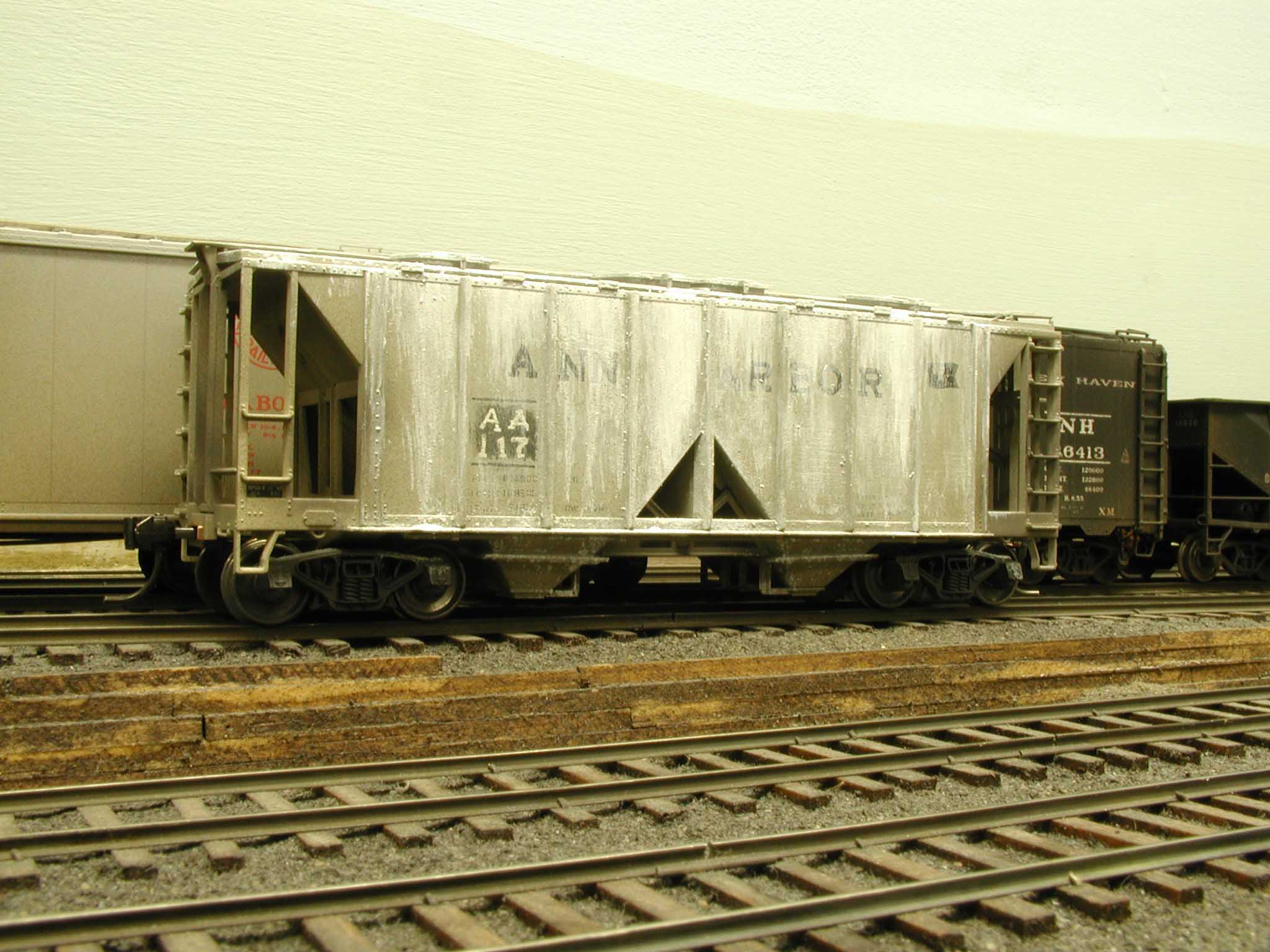 AA 172, one of Arnt Gerritsen's models. He began with a Kato 2-bay covered hopper and extensively modified it with new end ladders, grabirons, etc. |