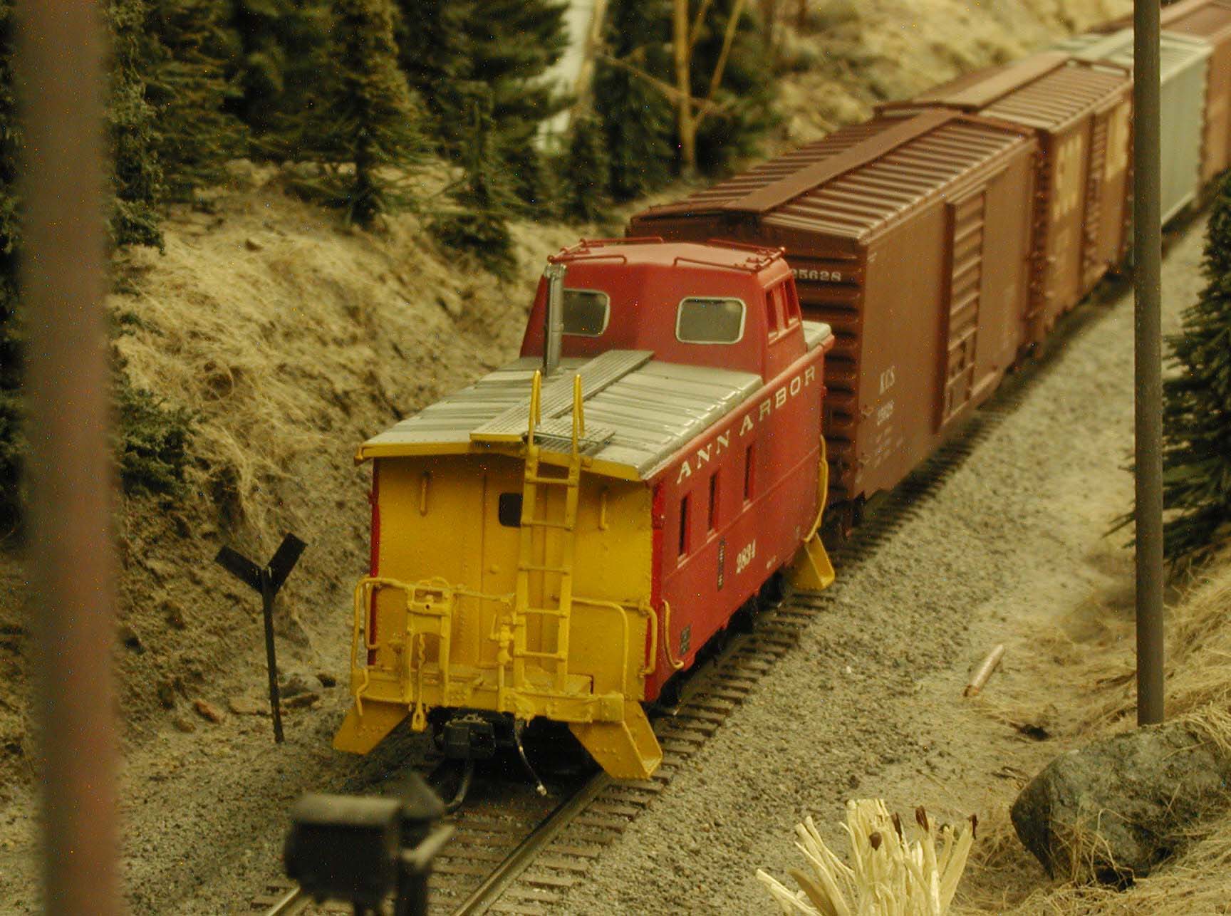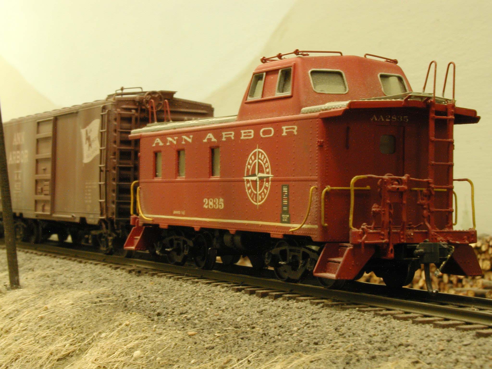 M&LS 8, Overland brass caboose, this one painted up as former AA 2830 after it went to the Manistique & Lake Superior RR. |