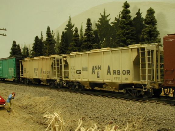 AA 531 and 572. Atlas 2-bay covered hoppers modified to represent Greenville cars as opposed to the PS model done by Atlas. End and side ladders modified. Lettered with AARRT&HA decal set. |