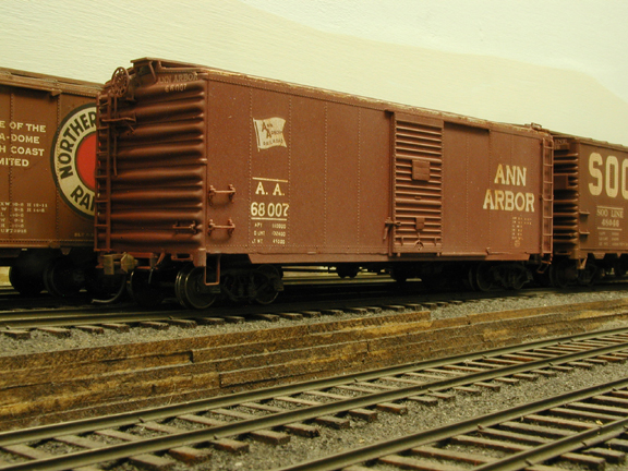 AA 68007, a 6800-series car belonging to Dan Gawrych. Believed he used a Branchline kit as the basis of the model and C-D-S dry transfers. |