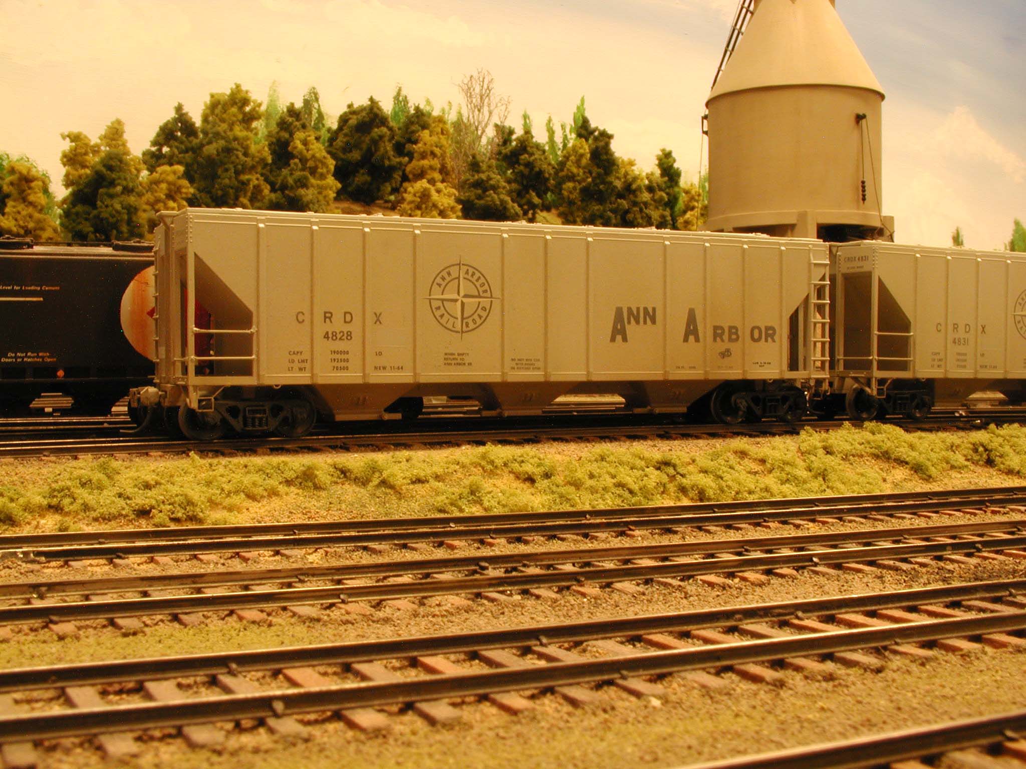 CDRX 4828, one of the leased "malt car" covered hoppers. Modified from a Walthers PS grain car as per the article in The Double A. |