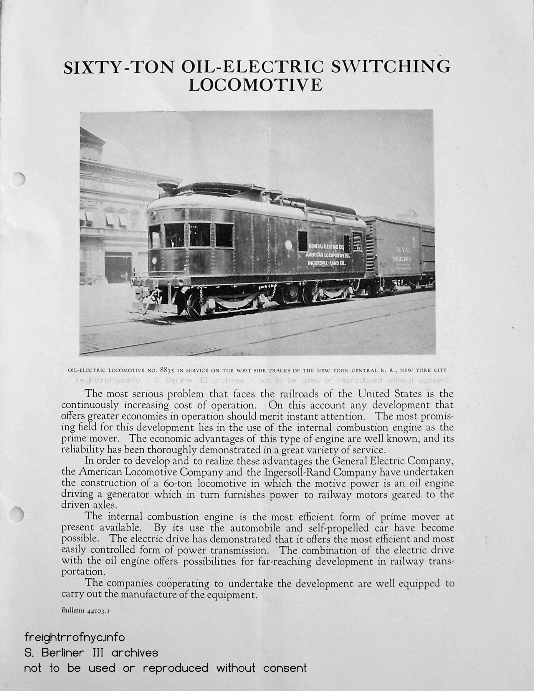 Steam Locomotive Legislation, Regulations and Restrictions in and around the City of New York: 1834 - 1930 . everything prior to and up to the Kaufman Act, including its being found unconstitutional in 1926 and its repeal in 1930; . . and the: . . #8835 - the Model X3-1 General Electric / Ingersoll Rand oil-electric slow speed switching locomotive . the first successful diesel-electric locomotive in New York City . .by Philip M. Goldstein |