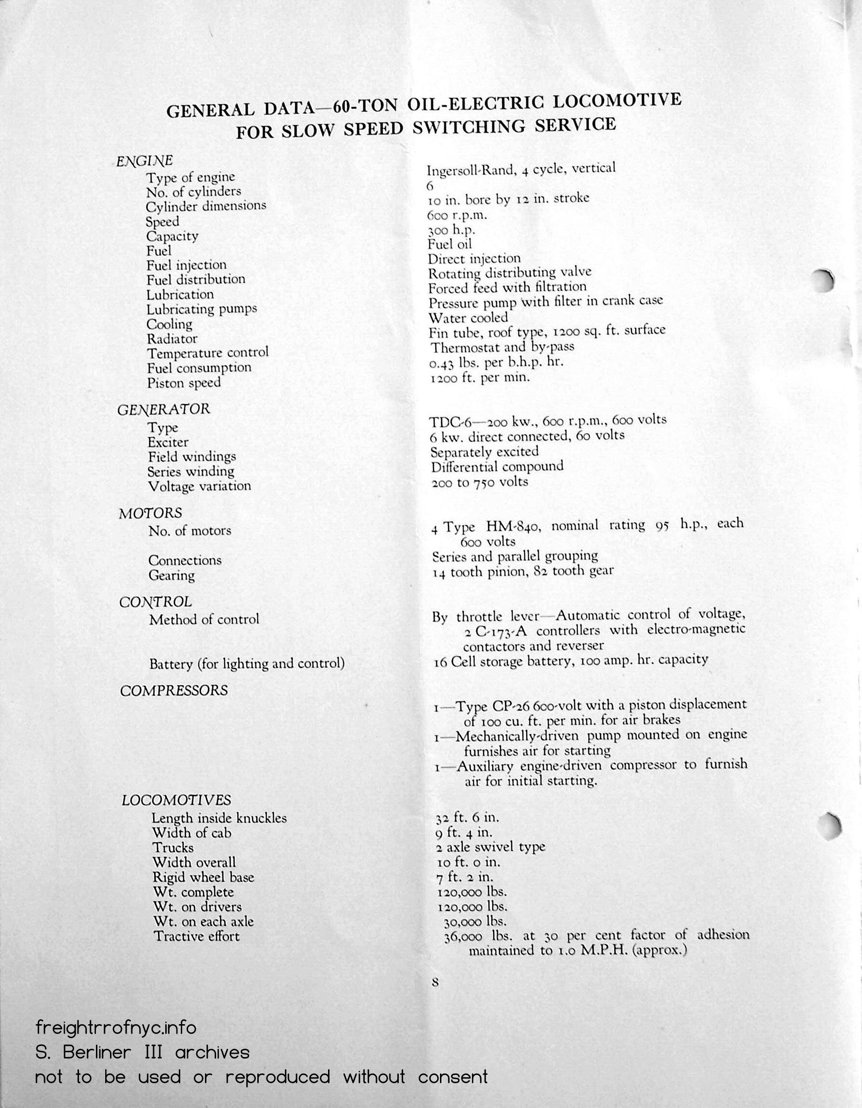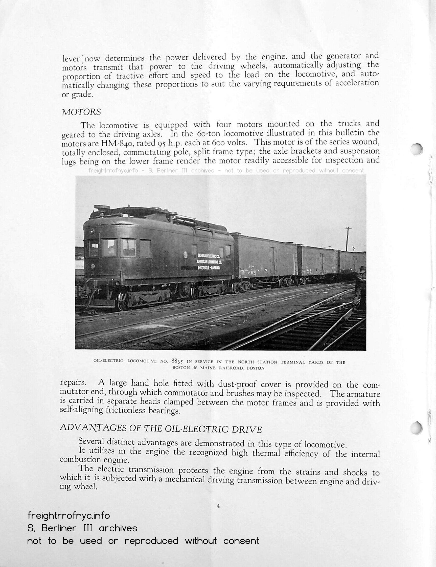 Sam Berliner III (RIP), had authored an extremely knowledgeable (and enjoyable) website containing an in-depth history on the development of the oil-electric locomotive, including the resulting commercial models sold. His website contained images, rosters, and specifications thereof in great detail, however upon his passing; the website was removed from the web. I did manage to download most of the pages before it was removed.
