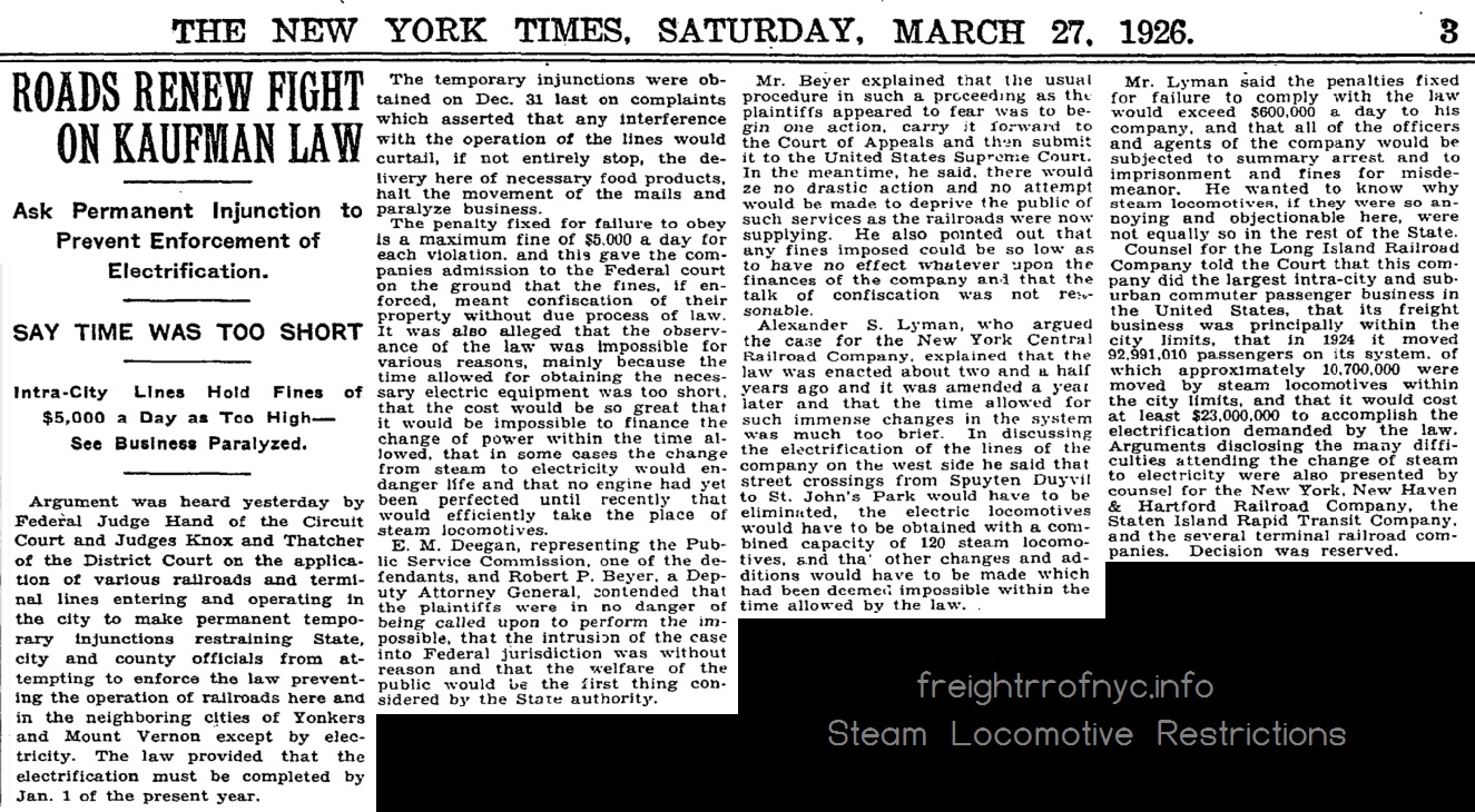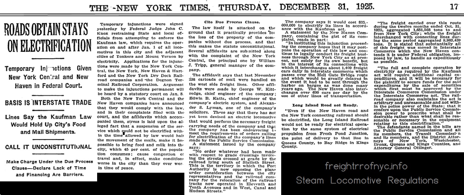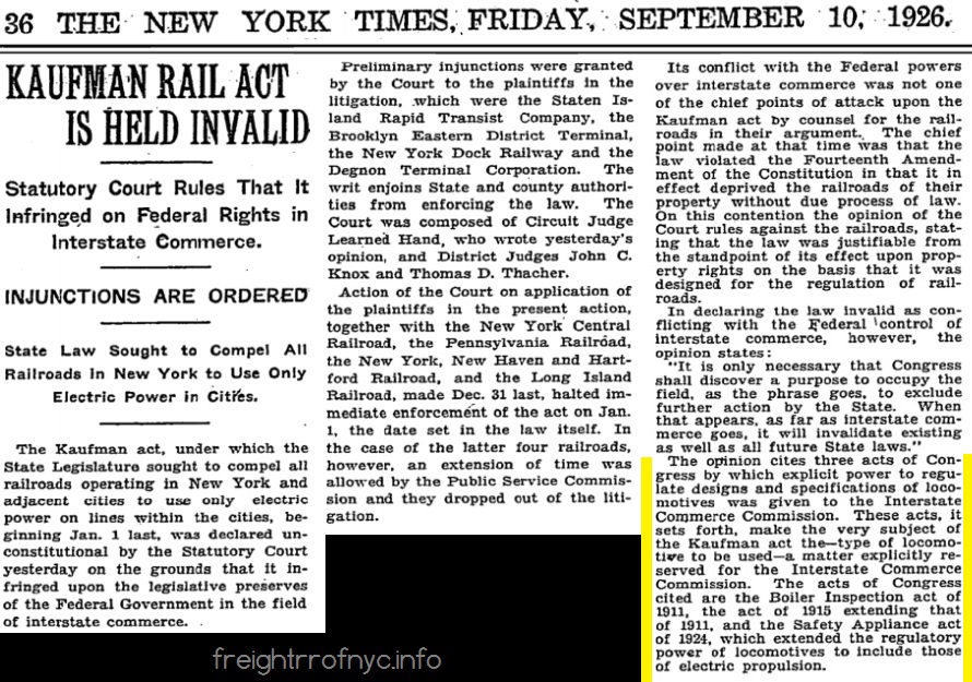 | Kaufman Act - major revelation - it was unconstitutional, overturned and repealed | 9/28/2025 | Steam Locomotive Regulations within the City of New York |