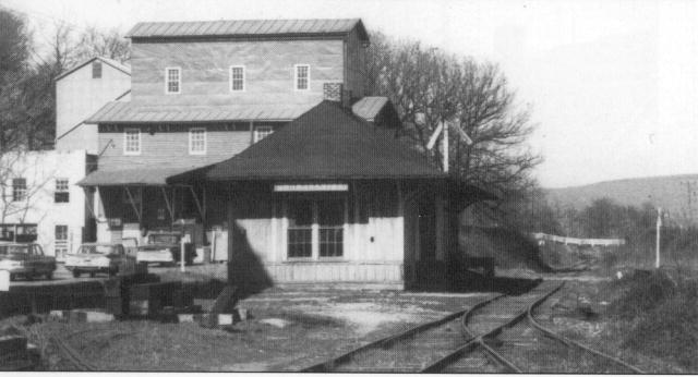 deeply overhanging eaves supported by triangular knee braces. The passenger station remains in place today.