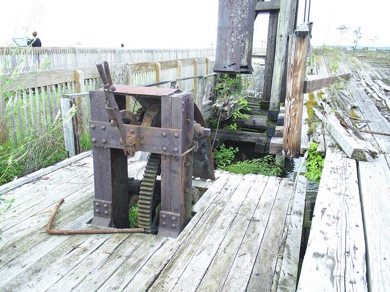 This was part of a hoist to match the apron height to the ferry. It used to be inside a small building. See the picture links at the bottom of this page for older photos.