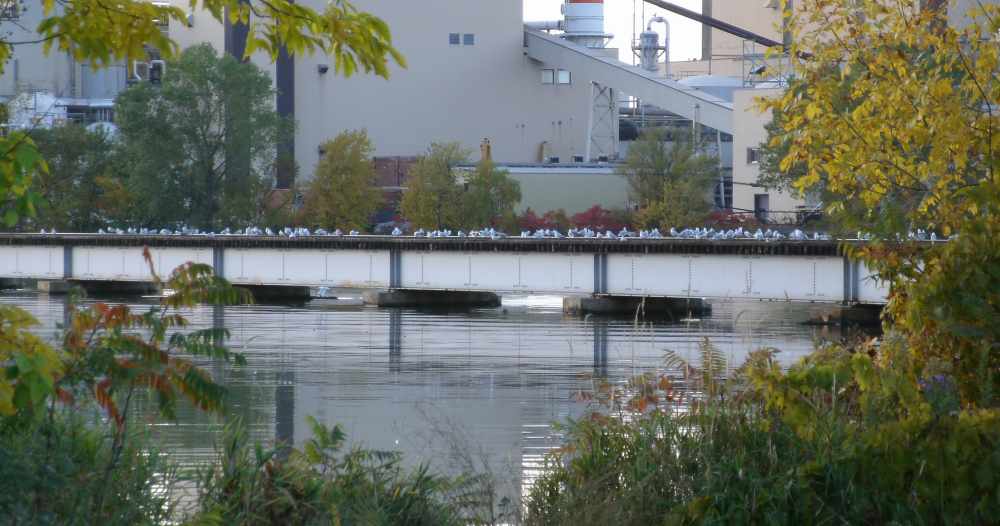 The sea gulls are resting on the Wisconsin River railroad bridge in Wisconsin Rapids. They stay there until a train is a hundred feet away. |