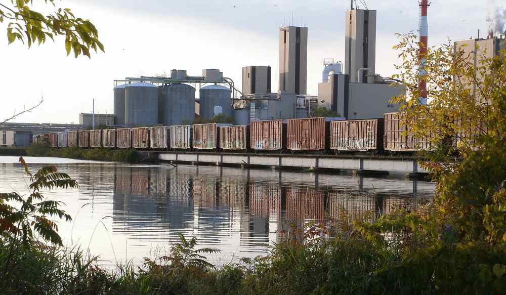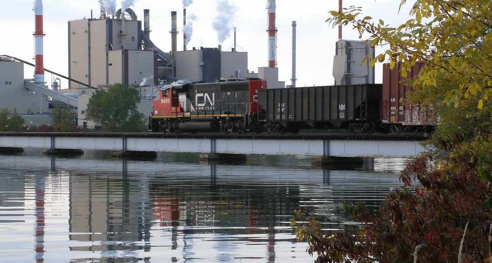 And away they go. All these boxcars came from the Biron mill. Good traffic, considering these paper mills were in chapter 11 last year. |