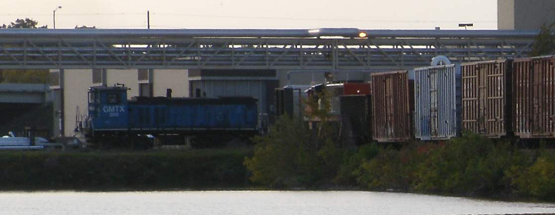 This Biron job is an hour late in the afternoon and they want to get home to the yard, but the paper mill switcher is also busy flying over the crossing and blocking them. (is the crossing protected by manual gates or a stop sign?). . . . . That's GMTX 200 and an empty bulkhead pulpwood car. |