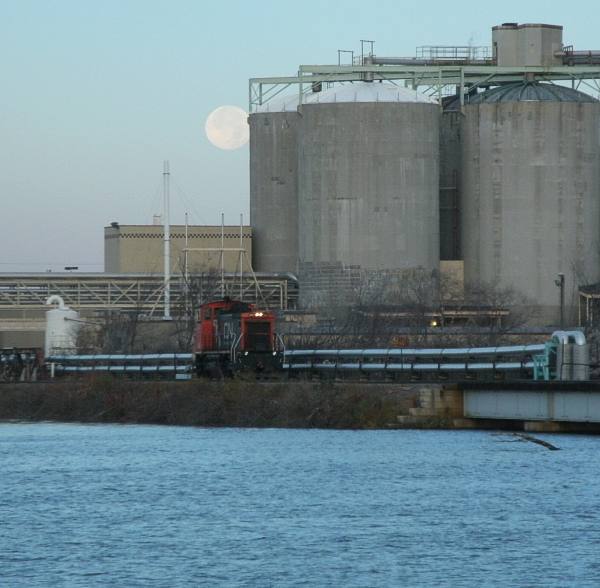 The WC 1570 has been around Wisconsin Rapids for much of October, 2012. This picture looks like one I took last year. The days are getting shorter, and daylight savings time will end and it will be few months before I'll take a scene like this again. |