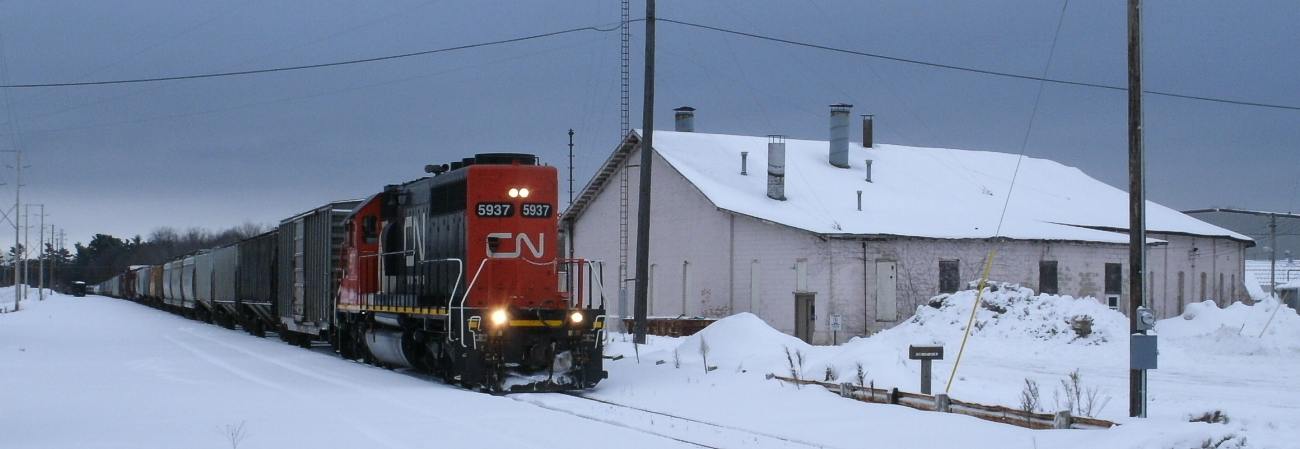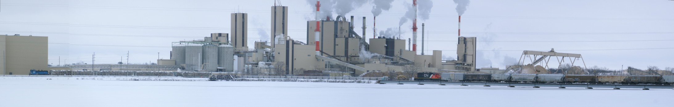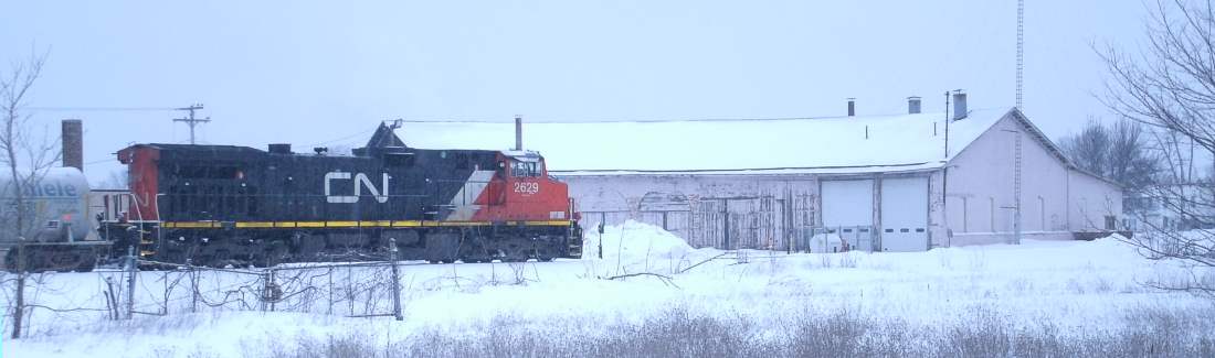 And the New Page blue paper mill engine GMTX 200 is on the riverbank in 2013, switching WC Mega-Log Haulers across the main, making for an extra slow approach for the CN train that just left their place at the roundhouse. . . . . . . Scroll right . . . . . . . . . . |