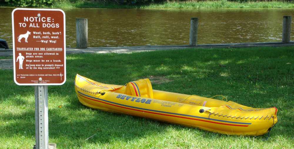 You don't need a boat to get good pictures. Gills Landing is in the backyard of a local tavern and a medium power lens should create a good view. Dog language in the county park / boat landing. |